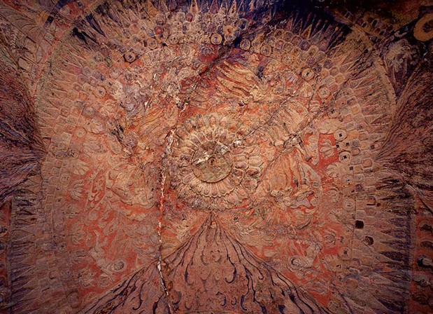 景明元年至正光四年(公元500-523)營造,洞窟平面呈馬蹄形,穹隆頂,深12米,寬10.90米,高9.3米,正壁雕主佛釋迦牟尼坐像及二弟子、二菩薩,南北壁均一立佛二菩薩。佛、菩薩體態(tài)修長,表情溫和,神采飄逸,是北魏晚期風(fēng)行的“秀骨輕像”的典型代表。地面刻蓮花圖案裝飾,示意蓮花寶池??唔斨虚g浮雕一朵盛開的大蓮花。版權(quán)所有山東聊城聊之旅國際旅行社有限公司,轉(zhuǎn)載必究!周圍有八身伎樂和兩身供養(yǎng)天,加之流蘇帷幔構(gòu)成一蓮花寶蓋。前壁有維摩詰變相、太子舍身飼虎圖,須達(dá)那太子施舍圖和皇后、皇帝禮佛圖(已被盜走)等大型浮雕圖像及十神王像。1978年為保護洞窟雕刻拆除磚卷門洞。使鮮為人知的四頭四臂、一頭四臂護法天重見天日。