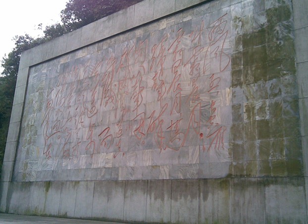 毛澤東填有《憶秦娥•婁山關》詞一首,描寫紅軍指戰(zhàn)員英勇鏖戰(zhàn)的壯烈情景?,F(xiàn)以行草手書體放大鐫于高14米,寬25米的大理石碑上,益增雄關聲色。