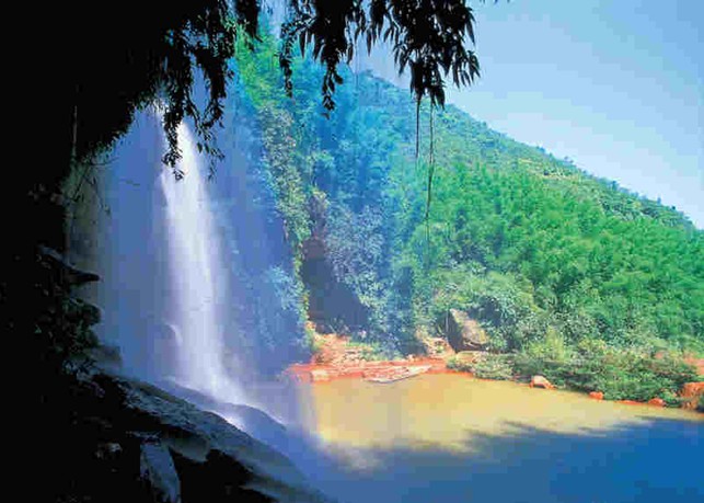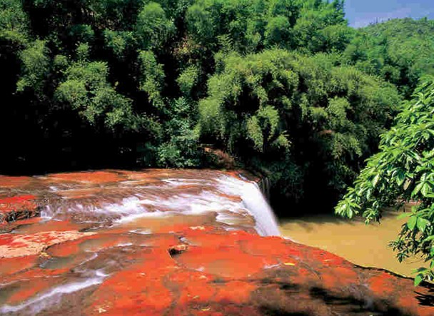 四洞溝瀑布群,是赤水國(guó)家級(jí)重點(diǎn)風(fēng)景名勝區(qū)的重要組成部分。位于貴州省赤水市大同鎮(zhèn)境內(nèi),離城區(qū)十五公里。景區(qū)是由四洞溝一段約四公里的山溪間,按大致相等的距離排列著四級(jí)跌水瀑布為主體,包括華平瀑布,構(gòu)成赤水“千瀑之市”的形象景區(qū)。版權(quán)所有山東聊城聊之旅國(guó)際旅行社有限公司,轉(zhuǎn)載必究!這四級(jí)瀑布瀑寬均在四十米左右,落差高者近五十米,它們形態(tài)各異,神韻俱佳,有如翠螺沐浴,或似新月流光,或若玉蟾戲蛇,或像云中落錦。版權(quán)所有山東聊城聊之旅國(guó)際旅行社有限公司,轉(zhuǎn)載必究!景區(qū)內(nèi)峰媚嶺秀,景色優(yōu)美,谷底翠竹繁茂,山間林木蔥蘢,溪邊奇形怪狀的丹霞石星羅棋布,水中天然植物盆景和丹霞石鋪成的道路旁桫欏,小金花茶等國(guó)家一級(jí)保護(hù)的珍稀植物隨處可見(jiàn)。