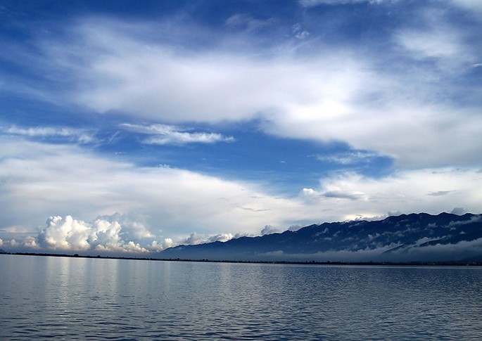 從空中往下看,洱海宛如一輪新月,靜靜地依臥在蒼山和大理壩子之間。洱海共有3島、4洲、5湖、9曲。洱海屬斷層陷落湖泊,湖水清澈見底,透明度很高,自古以來一直被稱作“群山間的無瑕美玉”。傳說在海底生長著一棵碩大無比的玉白菜,這碧波瑩瑩的湖水,就是一滴滴從玉白菜的心底沁涌出來的玉液。