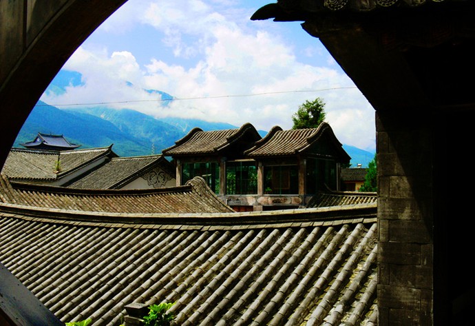 城內(nèi)由南到北,一條大街橫貫其中,深街幽巷,由西到東縱橫交錯,全城清一色的清瓦屋面,鵝卵石堆砌的墻壁,顯示著大理的古樸、別致、優(yōu)雅。