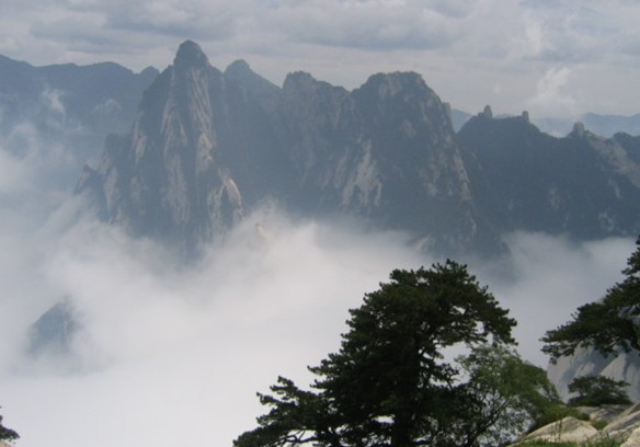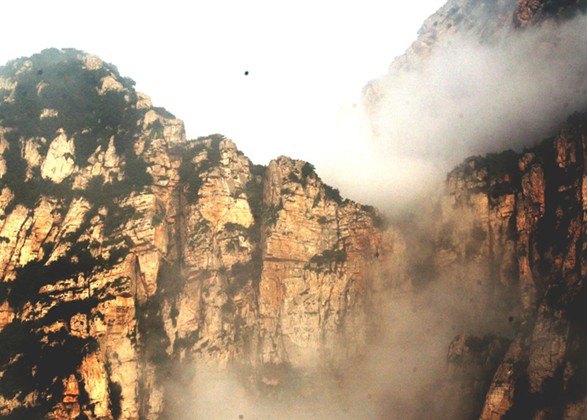 太室山,主峰峻極峰為嵩山之東峰,海拔1492米,主要建筑為中岳廟、據(jù)傳,禹王的第一個(gè)妻子涂山氏生啟于此,山下建有啟母廟,故稱之為“太室”(室:妻也。)。太室山共三十六峰,巖幛蒼翠相間,峰壁環(huán)向攢聳,恍若芙蓉之姿。主峰“峻極峰”,則以《詩經(jīng)•嵩高》“峻極于天”為名,后因清高宗乾隆游嵩山時(shí),曾在此賦詩立碑,所以又稱“御碑峰”。登上峻極峰遠(yuǎn)眺,西有少室侍立,南有箕山面拱,前有潁水奔流,北望黃河如帶。倚石俯瞰,腳下峰壑開綻,凌嶒參差,大有“一覽眾山小”之氣勢。山峰間云嵐瞬息萬變,美不勝收。正如詩中所說:“三十六峰如髻鬟,行人來往舒心顏。白云蓬蓬忽然合,都在虛無縹緲間。”
