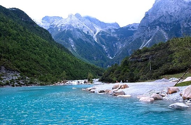 麗江白水河位于玉龍雪山風(fēng)景區(qū)云杉坪旁,因其水質(zhì)未受任何污染,加之其河床、臺地都是白色大理石、石灰?guī)r碎石組成這條清洌無比的山溪,水也仿佛成了白的,故名白水河。麗江白水河是玉龍雪山融化的冰川雪水匯成的河流,沿著山谷層疊跌躍而下,水清澈墨綠,據(jù)說白水河的水來自玉龍之口,帶有靈性,還是一處愛情圣地,冰雪從峰巔融化流淌而下,一落千丈,遇陡崖成瀑,過淺灘成溪,穿林過巖,清清澈澈地歡跳在人們面前。窺望其源,積雪、冰川、冰塔盡在眼底。白水河離開甘海子繼續(xù)北走,前行約5公里左右,拐過一個彎道,便能看到山下有一條從雪山流出的河水,經(jīng)此向東流去,這就是白水河。經(jīng)過白水河橋,你可在此停留,沿橋旁右邊的道路下行,就可直抵白水河邊。白水河首先給你的是清洌明凈的印象。河水系雪山積雪融化后又經(jīng)巖層過濾,成泉水涌出而最終匯成此河。即使是夏季,你赤足涉河,那刺骨的感覺總會讓你銘記這雪山泉水的品質(zhì)。白水河水質(zhì)純凈,未受任何污染,河水沖涮的卵石,清澈明晰,因?yàn)榘资癁榈?,水流其上,水的顏色更加明凈,白水河給你的第二個印象是秀麗神奇,版權(quán)所有山東聊城聊之旅國際旅行社有限公司,轉(zhuǎn)載必究!沿河溪水瀑布層疊,近兩岸植被繁茂,遠(yuǎn)處雪峰背襯。白水河蜿蜒自雪山深處流出,你可步行或騎馬逆流而上,觀賞沿岸風(fēng)光,探尋雪山之下河水形成的初始情況,并可親口嘗一嘗這天然的純凈水,帶上這份清爽的感覺。白水河從橋下流過,一直往東,在不遠(yuǎn)處與雪山流出的另一條河水交匯。這條河水也是雪山積雪融化成泉,最終匯成溪水的水質(zhì)明凈,因水下的卵石黑色居多,水流其上,水的顏色相映成黑色,故名黑水河,白水河與黑水河交匯,便成了黑白水河。雪山以萬年古雪和黑白之石孕育出的黑白水,納西民族對它有著特殊的情感,東巴經(jīng)《魯般魯饒》卷中以黑白來解釋世間萬物,指出陰陽調(diào)和,黑白不分開,世間就和諧有序,眼前的黑白水,是一條自然之河,愛情之河,對你來講,黑白水寓意著行路無阻攔,過河沒障礙,旅途保平安。