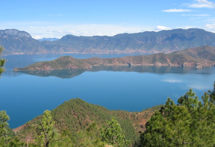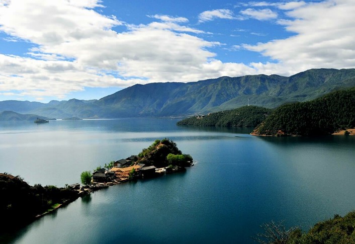 瀘沽湖不僅水清,而且島美。瀘沽湖四周青山環(huán)抱,湖岸曲折多灣,共有17個沙灘、14個海灣;湖中散布5個全島、3個半島、1個海堤連島,一般高出水面15至30公尺,遠看象一只只綠色的船,飄浮在湖面。其中,寧蒗一側(cè)的黑瓦吾島、里無比島和里格島,成為湖中最具觀賞和游覽價值的三個景點,被譽為“瀘沽三島”。黑瓦吾島位于湖心,距離湖岸落水村2500米,島上樹術(shù)蔥籠,百鳥群集,是南來北往的候鳥、野鴨的棲息之處,也是昔日永寧土司阿云山總管的水上行宮,美國學(xué)者洛克也曾旅居于此。