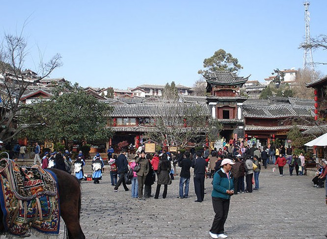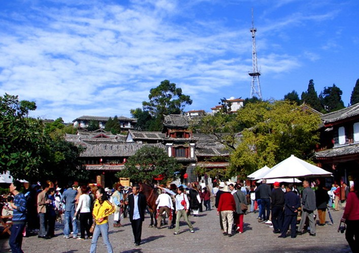 麗江古城文物古跡眾多,版權(quán)所有山東聊城聊之旅國(guó)際旅行社有限公司,轉(zhuǎn)載必究!文化蘊(yùn)含豐厚獨(dú)特,是我國(guó)保存最完整、最具民族風(fēng)格的古代城鎮(zhèn)。1986年國(guó)務(wù)院公布為中國(guó)歷史文化名城;1997年12月4日,被聯(lián)合國(guó)教科文組織正式批準(zhǔn)列入《世界遺產(chǎn)名錄》清單,成為全國(guó)首批受人類(lèi)共同承擔(dān)保護(hù)責(zé)任的世界文化遺產(chǎn)城市;2001年10月,被評(píng)為全國(guó)文明風(fēng)景旅游區(qū)示范點(diǎn);2002年,榮登“中國(guó)最令人向往的10個(gè)城市”行列。 四方街是古城心臟,交通四通八達(dá),周?chē)∠锿ㄓ?,?jù)說(shuō)是明代木氏土司按其印璽形狀而建。這里是茶馬古道上最重要的樞紐站。明清以來(lái)各方商賈云集,各民族文化在這里交匯生息,是麗江經(jīng)濟(jì)文化交流的中心。這里是歷代集市中心,每日萬(wàn)頭躦動(dòng),熱鬧非常。
