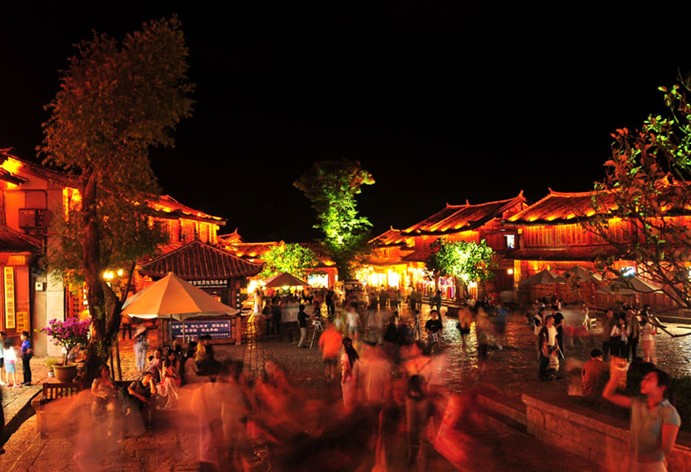 四方街最迷人的是晚上,沿河都是些大大小小的酒吧,茶樓。其中不乏外國(guó)人經(jīng)營(yíng)者。這些酒吧,茶樓門(mén)前,大紅燈籠型狀各異,高高的懸掛在每戶(hù)人家門(mén)前。晚間的四方街就這樣籠罩在溫暖祥和的氣氛中。版權(quán)所有山東聊城聊之旅國(guó)際旅行社有限公司,轉(zhuǎn)載必究!紅燈籠的倒影隨河水飄蕩,約約綽綽。這里是歷代集市中心,每日萬(wàn)頭躦動(dòng),熱鬧非常。從四方街四角延伸出四大主街,直通東南西北四郊,又從主街岔出眾多街巷,如蛛網(wǎng)交錯(cuò),往來(lái)暢通。街道全用五彩石鋪砌,平坦?jié)崈簦绮粨P(yáng)塵,雨不積水。幾乎每條街道一側(cè)都伴有潺潺流水。由此形成以四方街為中心,四周店鋪客棧環(huán)繞,沿街逐層外延的稠密而又開(kāi)放的格局,古老的集市就這樣孕育了城市最初的形狀,這與中國(guó)傳統(tǒng)的四四方方的井字形街道是不是一樣的。