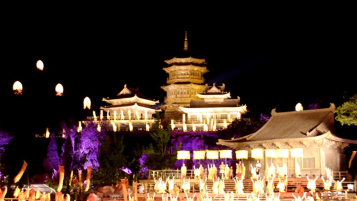 《禪宗少林•音樂大典》演出規(guī)模宏大,音畫一體,近600人的禪武演繹,少林僧侶的現(xiàn)場唱誦,春夏秋冬的景觀變化,直指心性的佛樂禪音,合成了中岳嵩山輝煌的交響。每天晚上8:00的定時演出,成為中原文化旅游的一大亮點。