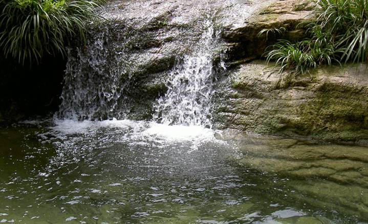 在椎?;ㄖ鶅蓚?cè)不遠(yuǎn)處有一天然石門,高350多米,人曰“玉泉門”。玉泉門左右絕壁千仞,絕壁上多生青松、灌木,石門由距今五六億年前的巨巖構(gòu)成。巖壁陡峭如峭,兩扇石門恰似半開半掩的門扇,清爽的山風(fēng)直從石門里吹出來,給人送來一陣涼意。誰若在這靜謐的幽谷中大喊一聲,空曠的峽谷便久久地蕩起悠悠的回音。抬頭仰望,巨壁夾天,大有巖山壓境之勢,令人驚恐。真是“峰與天相連,人在窯中行”?。∮袢T為深淵奇峽,淵谷很窄,僅十余米,宛如古關(guān)隘。清澈的玉泉溪從這關(guān)隘巖門中擠石而出,滑下石級,叮咚之聲,如撥琴弦。在玉泉門內(nèi)藏著一汪潭池,潭邊巖石上布滿絨絨的絲苔,經(jīng)水浸潤,綠得晶亮,象孔雀綠羽。潭水也著碧綠色,如同一顆綠珠、一塊翡翠。進(jìn)入玉泉門,版權(quán)所有山東聊城聊之旅國際旅行社有限公司,轉(zhuǎn)載必究!然明朗,別有洞天。溯玉泉溪而上,兩岸巧石寄花應(yīng)有盡有,一步一景,美不勝收