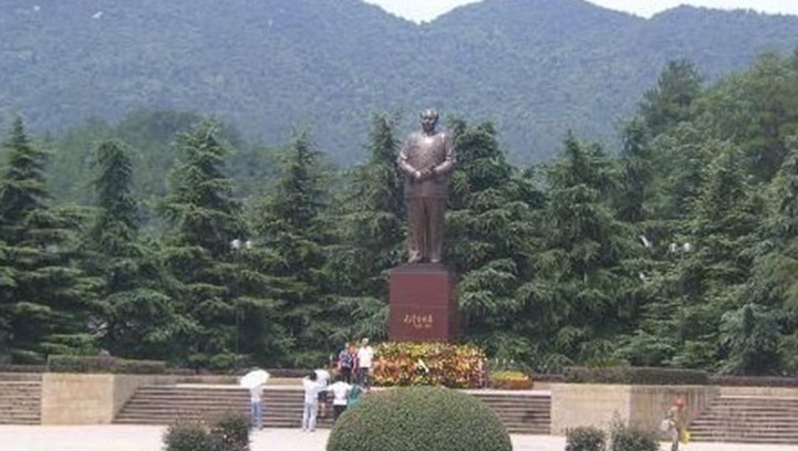 毛主席的銅像矗立在韶山?jīng)_廣場(chǎng)。這里背襯韶峰,是韶山?jīng)_的中心,對(duì)面就是毛氏宗祠和毛澤東紀(jì)念館。