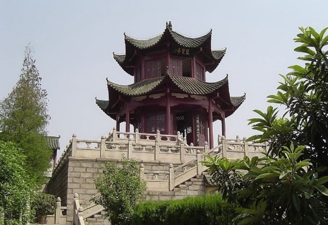 琵琶亭始建于唐代,原在九江城西長江之濱,即白居易送客之處。但歷代屢經(jīng)興廢,多次移址。清代乾隆年間(1736~1795 年)重建,至咸豐年間(1851~1861年)又遭兵毀。1988年3月新琵琶亭建今址。琵琶亭占地面積3300多平方米,坐北朝南。整個庭院采取中軸線對稱布局,分主亭、左碑廊、右碑廊三部分,主建筑琵琶亭座落在臨界江七米高的花崗巖石基上,亭高20米,雙層重檐,懸掛著劉海粟大師題寫的 “琵琶亭”金字大匾額,亭臺氣勢磅礴,熠熠生輝。