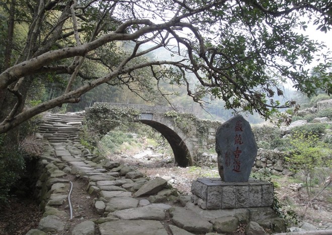 徽饒古道歷來是古徽州通往饒州的交通要道,昔日徽商享譽(yù)大江南北,徽州古道功不可沒。此古道從梅嶺村前的河對岸一直通向貫穿虎頭山,連接皖贛兩省,10公里,寬三尺,進(jìn)入安徽可到休寧、屯溪,全部由麻石鋪砌而成。踏著蜿蜒古樸的山道,觀賞著蒼勁古木,蔥翠竹海,傾聽著寧靜之中的聲聲鳥鳴,別有一番情趣。