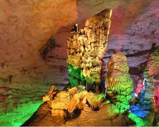 天橋之奇,尚不在橋本身。橋臨絕谷,絕谷之內(nèi),多峭壁崢壑,層層刻剝,如堆如砌,蔚為壯觀?;蛉缧郦{長嘯,或似猛虎跳躍,或如捷猿攀登,或若仙翁盤坐。此時(shí)不斷有云霧從谷底涌起,恰似銀浪翻滾,躍上橋頭,使人如入蓬萊仙境,頓生飄然欲仙之感。俄頃,一陣山風(fēng)由北而來,吹散云霧,錦銹谷、天橋又一一顯現(xiàn),重放她的奇異風(fēng)采。