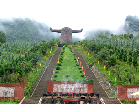 神農(nóng)架據(jù)傳是華夏始祖、神農(nóng)炎帝在此搭架采藥、療民疾矢的地方。他在此“架木為梯,以助攀援”,“架木為屋,以避風(fēng)雨”,最后“架木為壇,跨鶴升天”。神農(nóng)炎帝是華夏文明開(kāi)創(chuàng)者之一,后人將其豐功偉績(jī)列陳有八:訓(xùn)牛以耕,焦尾五弦,積麻衣革,陶石木具,首創(chuàng)農(nóng)耕,搭架采藥,日中為市,穿井灌溉。為緬懷祖先,頌其偉業(yè),林區(qū)人民政府于1997年開(kāi)始在神農(nóng)架主峰南麓小當(dāng)陽(yáng)興建神農(nóng)祭壇一座,塑其雕像于群山之中,但見(jiàn)牛首人身的神農(nóng)氏雙目微閉,似思似眠,神農(nóng)塑像與千年古樸相擁而立,景致渾宏,氣宇不凡,蔚為壯觀。