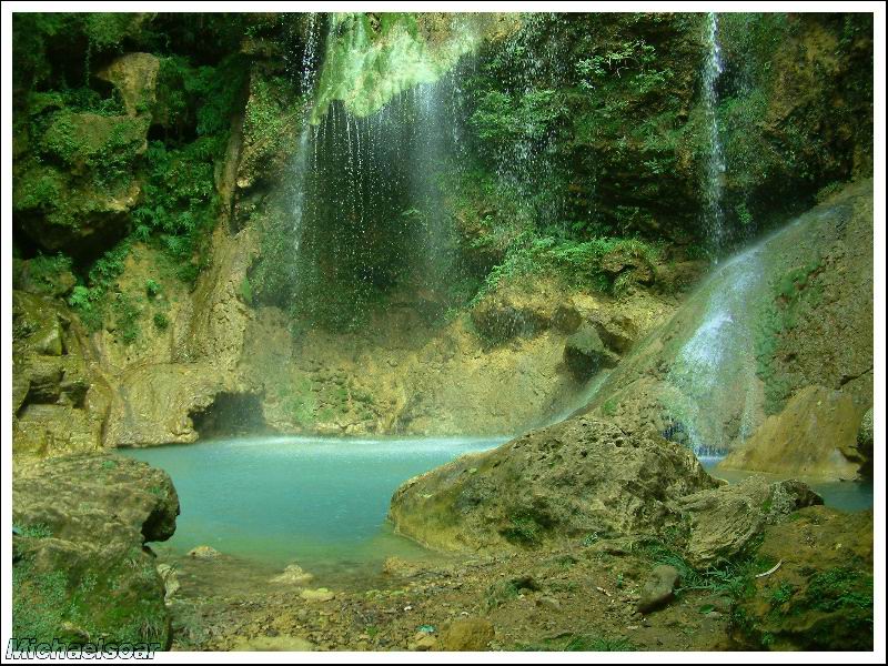宋洛鄉(xiāng)里有一處水洞,只要洞外自然溫度在28℃以上時(shí),洞內(nèi)就開(kāi)始結(jié)冰,山縫里的水沿洞壁滲出形成晶瑩的冰簾,向下延伸可達(dá)10余米,滴在洞底的水則結(jié)成冰柱,形態(tài)多樣,頂端一般呈蘑菇狀,而且為空心。進(jìn)入深秋時(shí)節(jié),冰就開(kāi)始融化,到了冬季,洞內(nèi)溫度就要高于洞外溫度。