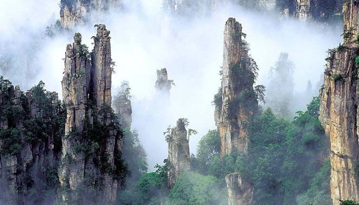 武陵源獨特的石英砂巖峰林在國內(nèi)外均屬罕見,素有“奇峰三千”之稱。在217.2平方公里的核心景區(qū)中,有石英砂巖山峰3103座,峰體分布在海拔500-1100米,高度由幾十米至400米不等。峰林造型若人、若神、若仙、若禽、若獸、若物,變化萬千,這些突兀的巖壁峰石,連綿萬頃。每當雨過天晴或陰雨連綿天氣,山谷中生出的云霧繚繞在層巒疊嶂之間,云海時濃時淡,石峰若隱若現(xiàn),景象變幻萬千。