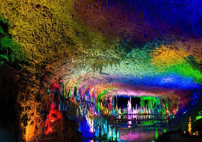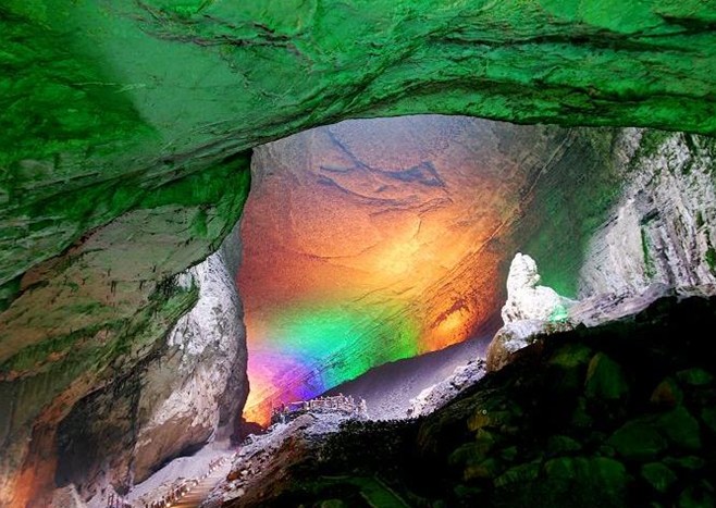 開放游覽主洞第三層、第四層,面積8.l萬平方米,分為穹廬廣廈、長廊石秀、云步通幽等7個大廳。各大廳景觀別具一格,鐘乳、石花、石緯、石柱等組成琳瑯滿目、五光十色的景致。主洞內(nèi)有寬敞的大廳,也有迂回的長廊;有對峙的"高山",也有臥波的"長橋";各種鐘乳石巖溶于奇異狀,瑰麗萬端,宛如一個金碧輝煌的地下宮殿。主洞兩旁又有耳洞、吊洞等10余個大溶洞,上下交錯,版權(quán)所有山東聊城聊之旅國際旅行社有限公司,轉(zhuǎn)載必究!形成洞中有洞、洞下有洞的奇觀,并有陰河穿流其間。陰河河水清澈,魚兒漫游,有發(fā)出微微磷光的亮蝦;有珍稀的玻璃魚,形如蝌蚪,小巧玲瓏,顏色粉紅,全身透明,肝膽可見,聽覺靈敏,難得一見。