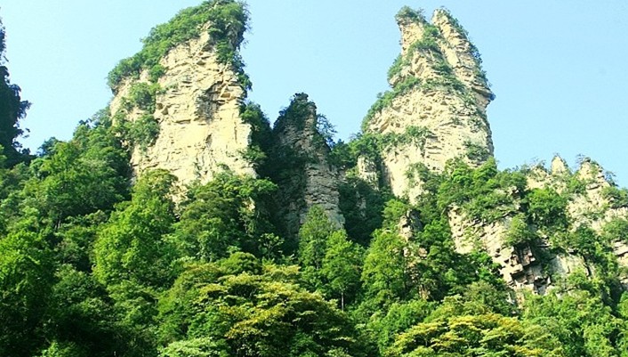 十里畫廊山清水秀,繁花似錦,百鳥爭(zhēng)鳴。境內(nèi)景物造型奇特:若人,若神,若仙,似林,似禽,似獸的石英砂巖峰林在云霧中時(shí)隱時(shí)現(xiàn),變化萬千。早在明代就有人寫下“人游山峽里,宛如畫圖中”等佳句。大自然這位雕塑大師,以鬼斧神工之國,在十里畫廊塑造了稀世珍品,它是藝術(shù)的世界,童話的世界和神秘的世界,為中外游客叫絕。