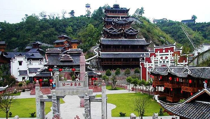 國(guó)家4A級(jí)旅游區(qū),位于張家界市區(qū),距張家界飛機(jī)場(chǎng)3公里,距張家界火車站7公里。是展示土家族建筑藝術(shù)及其文化風(fēng)情的現(xiàn)代展館。版權(quán)所有山東聊城聊之旅國(guó)際旅行社有限公司,轉(zhuǎn)載必究!興建于1999年,共分風(fēng)情表演區(qū)、歷史文物展示區(qū)、山寨民居展示區(qū)、飲食文化區(qū)、土家住宿區(qū)五個(gè)區(qū)域:。園內(nèi)主要建筑有土司城堡、擺手堂、九重天閣、土王宮、土王宴會(huì)廳、土家山寨等,其中九重天閣已被載入世界吉尼斯記錄。2001年4月6日,朱镕基總理視察時(shí),對(duì)九重天贊不絕口,他說:“一批民間匠人能造出這樣輝煌的吊腳樓,而且解決了力學(xué)的問題,真是不簡(jiǎn)單。”