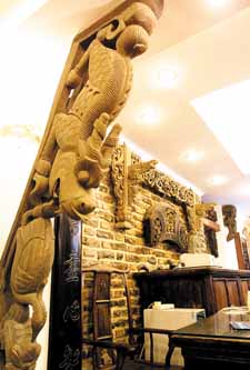 粵唯鮮位于天津小洋樓集中區(qū)域—五大道附近,這里不僅僅是家餐廳,它的另一個招牌是華蘊(yùn)博物館,馮驥才為它題詞:“能吃的博物館”,也算是中國唯一了。華蘊(yùn)博物館所陳列的展品囊括了西周至清朝各個歷史時期最典型的青銅器、銅器、木雕、石器、老門窗、彩繪木人、煙具、屏風(fēng)、座鐘、桌椅、木箱、提盒、老鐵、鐘等100多種的3000余件文物最早的可追溯到公元二三千年前。華蘊(yùn)博物館的特色之處還有世界上第一的石頭酒吧?;浳r的石頭酒吧開創(chuàng)了石文化第一,這里擺放的石頭多是漢白玉的,囊括了北齊、北魏、宋元明清等朝代的300余塊石頭。而且石頭酒吧所收藏的漢白玉石器無論是其數(shù)量還是質(zhì)量在全國乃至全世界都是一流的。酒吧的格調(diào)是中西合璧,古樸、不失現(xiàn)代風(fēng)格。