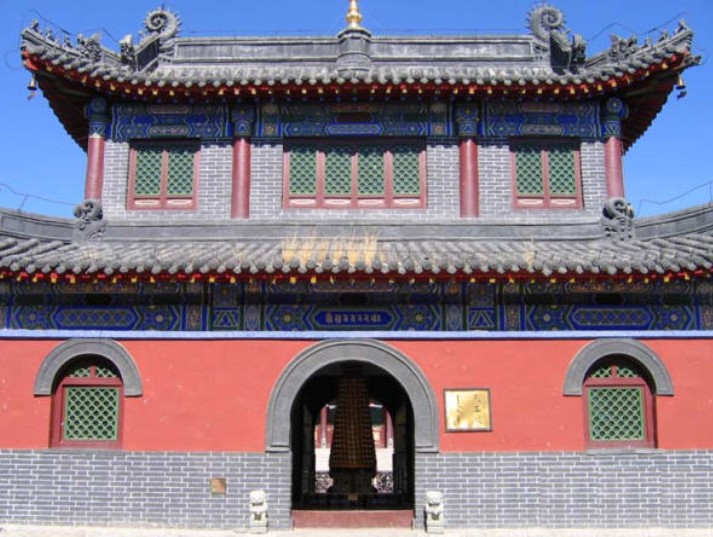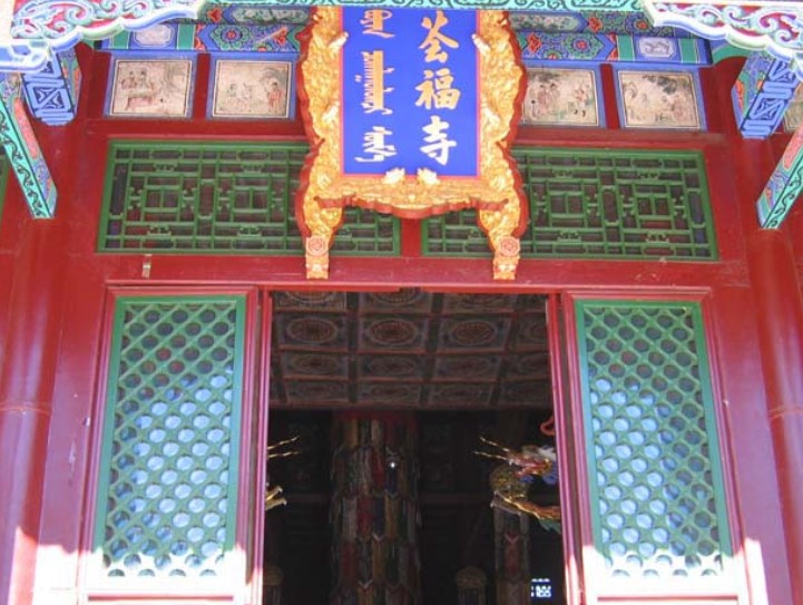 。共四十九間,高18米,占地面積620平方米,殿內(nèi)原有的《甘珠爾經(jīng)》、《丹珠爾經(jīng)》和建廟以來(lái)保存的主傳、經(jīng)卷、歷史籍、古幢、佛像、御賜金匾“金枝衍慶”(康熙帝書),“懿微堂”(乾隆帝書),“佛光普照”(嘉慶帝書)都被1913年1月18日(民國(guó)二年十二月十二日)午后的大火燒毀。
