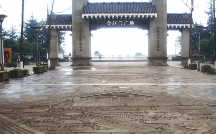 合江門金沙江、岷江交匯一側(cè)緊臨合江門地標廣場,建成時間是2001年3月20日。占地面積1.83萬平方米,有噴泉、牌坊、宜賓賦等景觀。