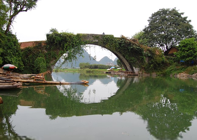 走進遇龍河流域,你不但看得到“精縮”了的漓江山水,還可以看到古色古香的村落,十分風(fēng)趣的水車,造型各異的古橋。這是一條很有文化品位的河,有水、有山、有竹、有草、有橋梁、有水車、有建筑。其透視出來的歷史氛圍和歲月滄桑,明顯要優(yōu)于漓江。