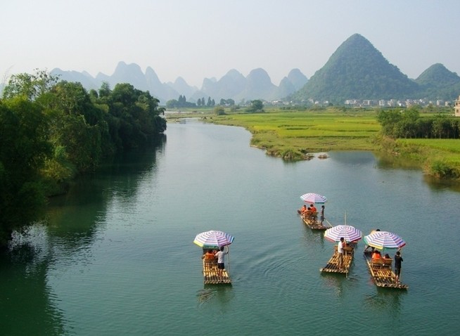 景點特色:和桂林山水最親密的接觸,有大竹筏和小竹筏,時間充足的話建議坐小竹筏,享受沖壩樂趣。