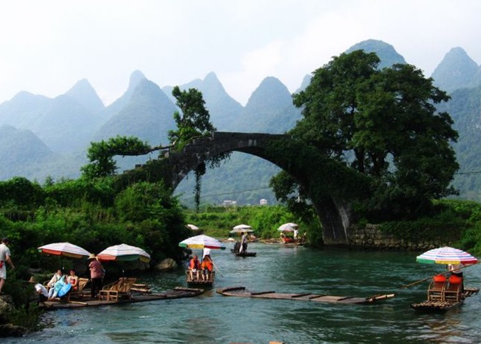 遇龍河是一條美麗的河流,特別是遇龍橋以下,至與金寶河匯合的合山江口。約12干米這一段,群峰疊聳,村莊錯落,可以觀賞到遇龍橋、犀牛望月、穿山古寨、歸義城遺址、立指山、雙流渡口、駿馬凌空等風(fēng)光勝跡,是陽朔風(fēng)景又一佳境。