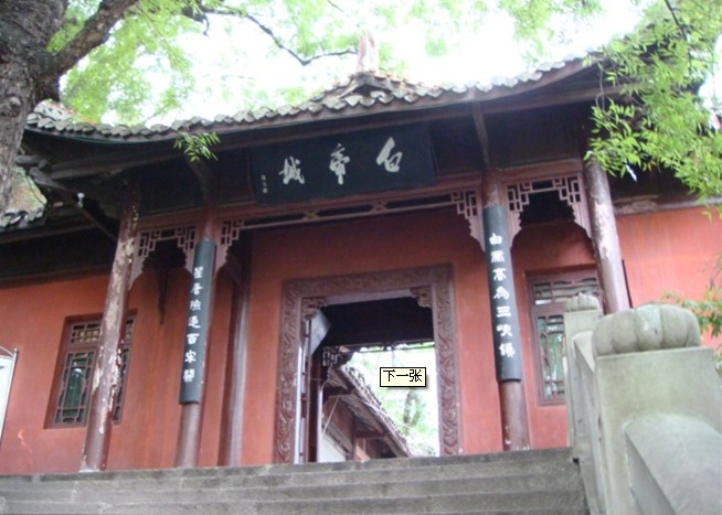白帝城位于長(zhǎng)江北岸,距奉節(jié)城東約15華里,掩映在郁郁蔥蔥的綠樹叢中,是三峽的西口,入川的門戶。由于地勢(shì)險(xiǎn)峻,古往今來,常為兵家必爭(zhēng)之地。白帝城也是三峽游覽勝地 西漢末年公孫述據(jù)蜀,在山上筑城,因城中一井常冒白氣,宛如白龍,他便借此自號(hào)白帝,并名此城為白帝城。公孫述死后,當(dāng)?shù)厝嗽谏缴辖◤R立公孫述像,