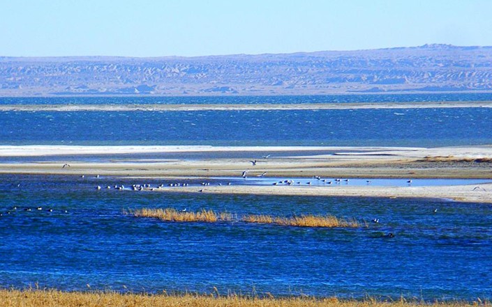 托素,也是蒙古語,意為“酥油”。托素湖的面積比可魯克湖大3倍還多,約180多平方公里,是一個(gè)典型的高原內(nèi)陸湖。托素湖周圍是一望無際的戈壁灘。
