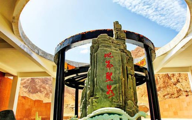 關(guān)于納赤臺(tái)清泉的起源,民間流傳一個(gè)傳說。相傳當(dāng)年西王母于昆侖山中瑤池之畔宴請(qǐng)諸神,創(chuàng)造神應(yīng)約赴會(huì)。版權(quán)所有山東聊城聊之旅國際旅行社有限公司,轉(zhuǎn)載必究!席間,諸神訴功,創(chuàng)造神凡摩表示要將昆侖山之北造成花氆氌之地,讓那里草肥水美牛羊壯,碧野千里飄奶香。西王母聽之,心曠神怡,特饋贈(zèng)凡摩幾樽瑤池瓊漿。宴罷,凡摩返。途中,凡摩飲興未艾,信手把樽暢欽,不料大醉。金樽擲地,瓊漿四溢。其乘坐的蓮花神龕化為赤臺(tái)群山,溢出的瓊漿水為昆侖泉。