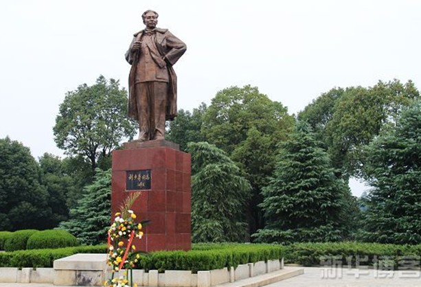 由中國美術(shù)館館長、著名雕塑家劉開渠及中國軍事博物館雕塑家程允賢設(shè)計(jì)的劉少奇銅像建于紀(jì)念館西南約200米的山包上,為站立式全身像,底座高3.1米,像高4米,總高7.1米,上鐫陳云題詞:“向堅(jiān)定的共產(chǎn)主義戰(zhàn)士劉少奇同志學(xué)習(xí)”。