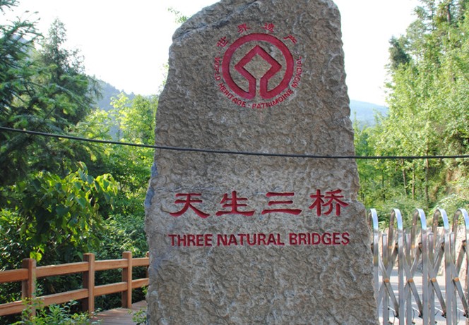 景區(qū)內(nèi)除了天生三橋以外,還有舍身崖、望峰石、綠茵塘、仙女洞等眾多景點點綴其間,引人入勝,令人流連忘返。行走于石階上不禁迷醉于這自然美景之中,群山相疊,石亭兀立,藤繞古樹,曲徑通幽,玲瓏幽靜,風(fēng)味不同,感覺宛如踏入了時空隧道,步入了另一人間。