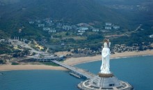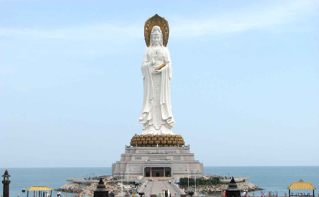三亞南山海上觀音圣像敬造工程因其規(guī)模宏偉、意義殊勝、佛理底蘊豐富,被譽為“世界級、世紀級”的佛事工程。像體為正觀音的一體化三尊造型,寶相莊嚴,腳踏一百零八瓣蓮花寶座,蓮花座下為金剛臺,金剛臺內是面積達15000平方米的圓通寶殿。金剛洲由長280米的普濟橋與陸岸相連,并與面積達60000平方米的觀音廣場及廣場兩側主題公園,共同組成占地面積近30萬平方米的“觀音凈苑”景區(qū)。