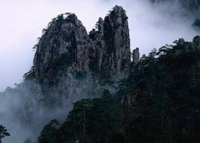 筆架山是一座石山,十分陡峭。山巖猶如刀削,看不見(jiàn)行人的蹤跡。山中只有一條埋藏在密林中的彎曲小徑,可將人引上山去。上了筆架山頂,一眼望去,翠綠的青山,猶如一座座剛從大海里冒出來(lái)的潔凈小島,一會(huì)兒被驚濤大浪埋進(jìn)云海,—會(huì)兒又被海水輕輕推出海面,露出一點(diǎn)點(diǎn)蒼翠的山頂?;译牧髟骑w霧,終日在筆架山上如浪似濤般地滾動(dòng)著,翻卷著,那么縹緲、那么幽靜、那么引人遐想!