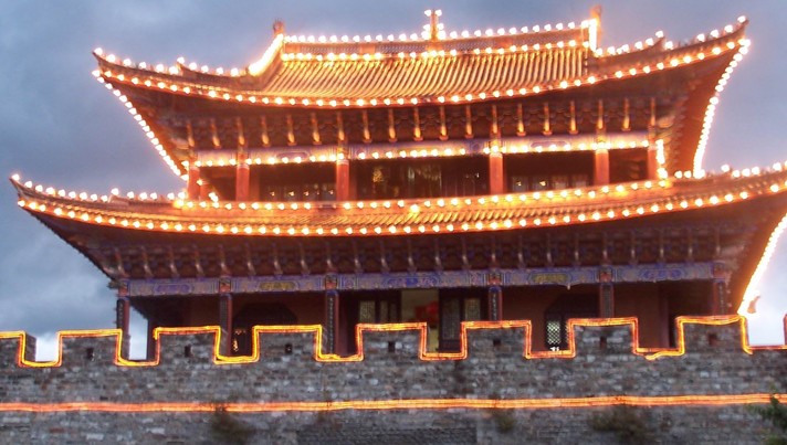 大理古城簡稱葉榆,又稱紫城,其歷史可追溯至唐天寶年間,南詔王閣邏鳳筑的羊苴咩城(今城之西三塔附近),為其新都?,F(xiàn)在的古城始建于明洪武十五年(公元1382年),方圓十二里,城墻高二丈五尺,厚二丈。東西南北各設一門,均有城樓,四角還有角樓。解放初,城墻均被拆毀。1982年,重修南城門,門頭“大理”二字是集郭沫若書法而成。 由南城門進城,一條直通北門的復興路,成了繁華的街市,沿街店鋪比肩而設,出售大理石、扎染等民族工藝品及珠寶玉石。街巷間一些老宅,版權所有山東聊城聊之旅國際旅行社有限公司,轉載必究!也仍可尋昔日風貌,庭院里花木扶疏,鳥鳴聲聲,戶外溪渠流水淙淙。“三家一眼井,一戶幾盆花”的景象依然。古城內(nèi)東西走向的護國路,被稱為“洋人街”。這里一家接一家的中西餐館、咖啡館、茶館及工藝品商店,招牌、廣告多用洋文書寫,吸著金發(fā)碧眼的“老外”,在這里流連忘返,尋找東方古韻,漸成一道別致的風景。