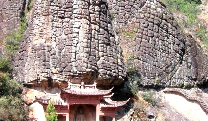 位于云南省劍川縣石寶山支脈,開(kāi)鑿于公元七三八至一二五三年,及少數(shù)元、明時(shí)代作品。這里山清水秀,怪石嶙峋,三月的石寶山滿山翠松,濃蔭掩徑,遠(yuǎn)眺石鐘山像是如來(lái)的頭部,花狀的突起物更像如來(lái)頭部的卷貝發(fā),或許古人就因此殊勝奇景而發(fā)愿開(kāi)窟。中國(guó)游俠徐霞客亦曾到此,他在《游石寶山記》就說(shuō)∶“石面有紋如龍鱗?!弊弑橹袊?guó)南北的他,亦不禁訝異稱怪哉!