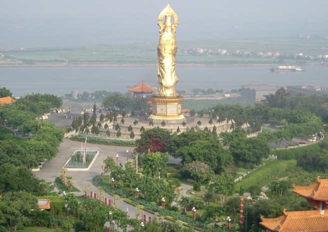 觀音勝境之內(nèi),蓮花朵朵,“出淤泥而不染,濯清漣而不妖”,再配以金身的望海觀音像,果然氣魄非凡,令人如入“凈土”,頓生敬畏之感。