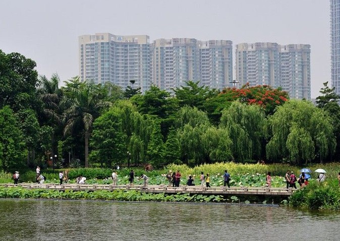 廣州東山湖公園在1958年以前是一片臭水洼地和菜田。1958年4月,在市長朱光倡導下,東山區(qū)各界群眾開展義務勞動建設(shè)公園,1959年建成向游客開放,定名為東山湖公園。