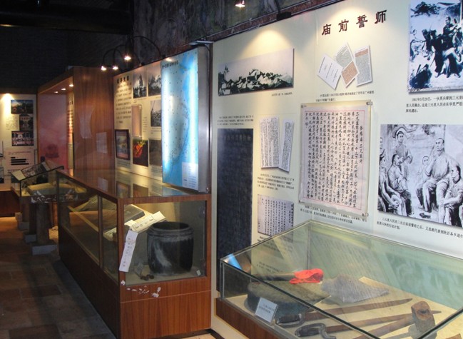 紀(jì)念館內(nèi)的展品主要有沙盤、七星旗、武器和戰(zhàn)利品。沙盤是當(dāng)年三元里及附近103鄉(xiāng)農(nóng)民抗擊英國侵略者斗爭的示意模型。它重現(xiàn)了當(dāng)年鄉(xiāng)民大敗英軍的場面與殺聲震天的情景,使我們?nèi)缗R其境,如聞其聲。這里“黑底牙邊三連星旗”曾是三元里抗英斗爭的指揮旗,英軍打仗忌黑旗,一見到這面旗就失色驚呼:“打死仗者來了!”頓時落魄驚魂,斗志盡失?,F(xiàn)在北京中國革命歷史博物館內(nèi)展出的三星戰(zhàn)旗是復(fù)制品,它和陳列在這里的大刀、長矛、繳獲的英軍軍服,以及陳列在大門兩邊的4門古炮,版權(quán)所有山東聊城聊之旅國際旅行社有限公司,轉(zhuǎn)載必究!被一代代保存下來,作為愛國主義教育的生動教材,讓后人永遠(yuǎn)記取這段光輝的一個歷史。