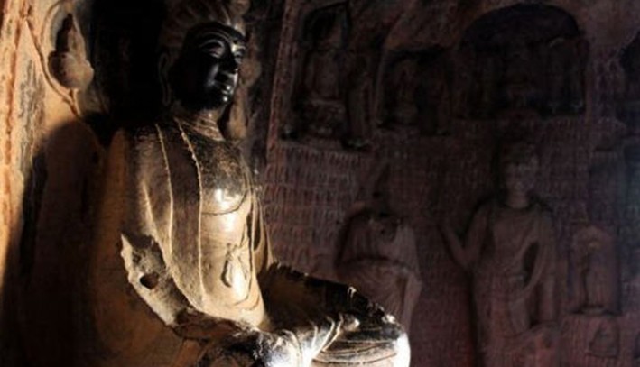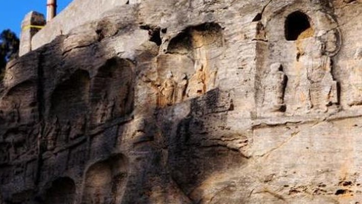 又稱萬佛寺、石空寺、千佛洞等。位于延安市黃陵縣西四十公里處的雙龍鎮(zhèn)峪村西,石窟開鑿于半山石崖間。此窟窟檐為陜西石窟中保留完好的原物,是研究宋代建筑的珍貴資料。石窟平面呈“凸”形,坐西向東,窟口為方形,寬2.4米,深2.6米,有佛像60余尊。窟口左右有佛龕各一個,以二園柱與洞口隔成三間,成檐廊。上有二層斗拱。這是宋代的仿建筑雕鑿,極為壯麗、精巧。中間是入口,走廊兩壁浮雕觀音菩薩像。石窟內(nèi)高5.3米,寬9.3米,深12米。正中為佛龕,高3.38米,寬5.9米,深4.73米,內(nèi)有大佛坐像12尊。中央坐釋迦牟尼,兩邊站立文殊、普賢二菩薩和迦葉、阿難兩弟子。窟項正中雕有千手千眼觀音一尊??邇?nèi)東西兩壁雕有高2.8米的立佛九尊,其中東壁有姿態(tài)優(yōu)美的赤足持碗雕像。后壁有五百羅漢和一百徒從脬雕像,場面宏大,氣勢恢宏,版權(quán)所有山東聊城聊之旅國際旅行社有限公司,轉(zhuǎn)載必究!并間以佛說法圖、磐涅圖。
