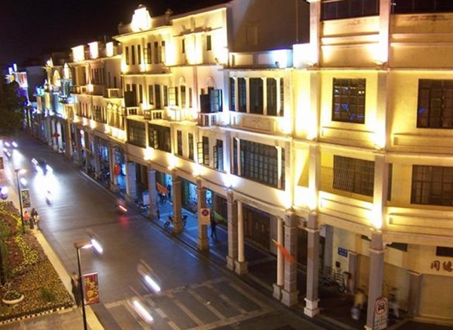 長堤風(fēng)貌街的建筑大部分在20世紀(jì)二、三十年代建成。建筑風(fēng)格中西結(jié)合,數(shù)百間騎樓各具特色,是江門的商業(yè)老區(qū),鼎盛時期,商業(yè)、娛樂、物流等風(fēng)生水起,高度繁榮,曾有“小廣州”之稱,也是目前廣東省內(nèi)乃至國內(nèi)保存較完整且僑鄉(xiāng)特色明顯的歷史文化街區(qū)。2001年,隨著改造整治工程完工,版權(quán)所有山東聊城聊之旅國際旅行社有限公司,轉(zhuǎn)載必究!長堤風(fēng)貌街以嶄新的面貌呈現(xiàn)在人們面前,成為江門城市建設(shè)的一大亮點和市區(qū)極具僑鄉(xiāng)文化特色的街市