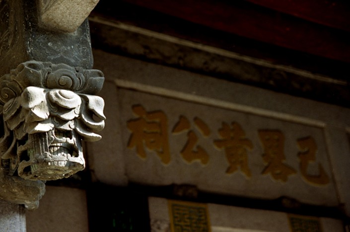 當(dāng)我們走過(guò)古城義安路,來(lái)到鐵巷頭,就可見(jiàn)到己略黃公祠,首先見(jiàn)到祠堂正面外觀,正中為凹斗門樓,門首橫額正面陰刻“己略黃公祠”,背面鐫有“孝思維則”,門樓門面分布四幅沉刻文字,內(nèi)容為嘉應(yīng)人氏溫仲和的“己略黃公祠頌”和兩幅沉刻圖畫;門樓馬面坡屋架裝有《封神演義》人物故事連環(huán)畫幅石雕飾品,這些石雕飾品,人物造型、結(jié)構(gòu)嚴(yán)謹(jǐn)、表情生動(dòng)、過(guò)渡自然,刻劃出古代西周時(shí)期一個(gè)轟轟烈烈的歷史場(chǎng)景。同時(shí),當(dāng)時(shí)工匠根據(jù)結(jié)構(gòu)要求,主受力的梁用浮雕刻,不影響結(jié)構(gòu)受力;其它采用通雕刻,安裝在一起既符合結(jié)構(gòu)要求又適合審美觀賞,充分體現(xiàn)能工巧匠構(gòu)思的巧妙……