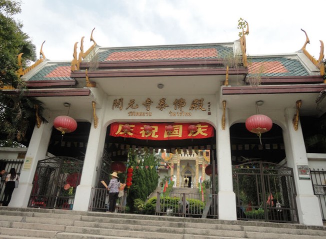 廣東潮州開元寺泰佛殿,位于韓江大橋東側(cè),慧如公園對面,是旅泰僑領(lǐng)、大慈善家謝慧如(1913—1996)捐巨資敬建,經(jīng)國務(wù)院宗教事務(wù)局批準(zhǔn),由潮州市自行設(shè)計(jì)、施工的中國大陸首座規(guī)模宏大的泰國式佛教梵宇,于1992年元宵落成剪彩,4月11日又舉行泰式銅鑄大佛開光法會。這是中泰友誼的一朵新花,中外佛教交流的碩果,為潮州歷史文化名城添彩。