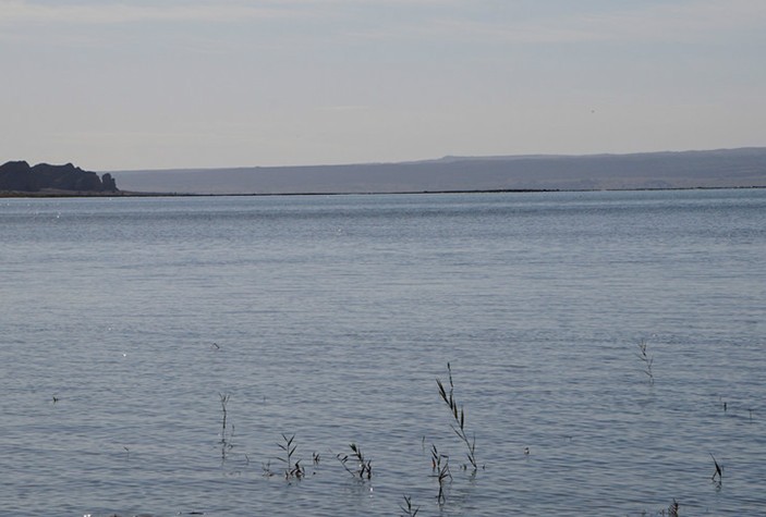 托素湖除了河道入湖出有稀疏的蘆葦外,和湖內(nèi)少量的浮游生物外,幾乎沒有水草,湖周圍零星生長著白刺,怪柳,莎莎等植物。
