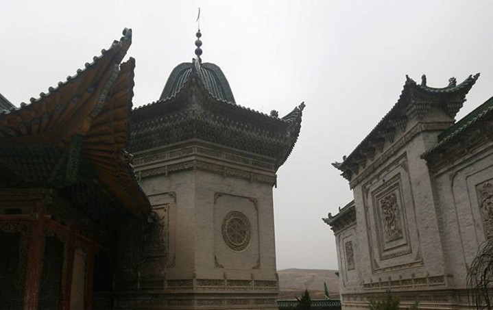 現(xiàn)二十里鋪拱北位于清水河畔50多米的五原山臺(tái)上,拱北總體建筑氣勢(shì)雄偉,古樸壯觀。全部建筑為六進(jìn)式,第一進(jìn)為門(mén)廳,第二進(jìn)為院落,第三進(jìn)為磚坊,第四進(jìn)為內(nèi)門(mén),第五進(jìn)為墓室,第六進(jìn)為后院。有樓、塔、亭、閣、照壁、六角八卦等。院內(nèi)松柏蒼翠,環(huán)境幽雅。
