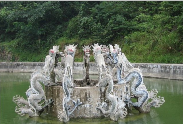 寺廟建筑是九龍山美景的重要組成部分。凡名山勝跡,都伴以殿宇亭榭古樸建筑作景。九龍山很早就有廟宇建在龍鼻山頭上,為鄉(xiāng)民信士進(jìn)行祭祀游覽的活動(dòng)場所。九龍山古有“九仙廟山”之稱。所謂九仙者,意為多種神仙。我國道家立上仙、高仙、大仙、玄仙、天仙、真仙、神仙、靈仙、至仙為九仙,據(jù)創(chuàng)修九龍山子孫堂碑記載,舊有佛殿、真武殿、關(guān)帝殿、靈宮殿,日久毀壞。