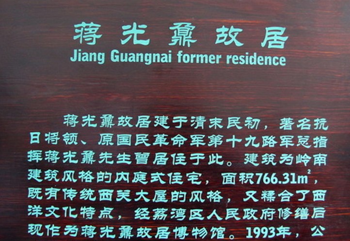 “廣東省文物保護(hù)單位、愛(ài)國(guó)名將蔣光鼐故居,作為旅游景點(diǎn),因配套設(shè)施不足,陳列內(nèi)容不夠豐富,展示形式較為落后,且年久失修一?,F(xiàn)在每個(gè)星期難覓一參觀者,即便是節(jié)假日,也不例外。”對(duì)此,蔣光鼐之子蔣建國(guó)先生回鄉(xiāng)實(shí)地察看時(shí),感到非常痛心。