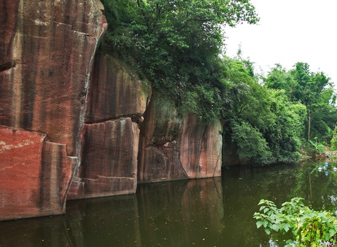 東莞市位于珠江三角洲東南部,穗港經(jīng)濟(jì)走廊中點(diǎn),東南與深圳、惠州毗 連,西北隔江與廣州相望,南臨伶仃洋,是我國南方各地與太平洋沿岸國家地區(qū)往來的主要通道。燕嶺原是東莞這里明清時(shí)期的古采石場,有些象廣東最著名的蓮花山的形成原因,樣子也很象。石料為水成巖紅石,經(jīng)數(shù)百年開采殘留下來許多的石壁、石柱,呈暗粉紅色,當(dāng)?shù)厝朔Q之為"十八間房"。