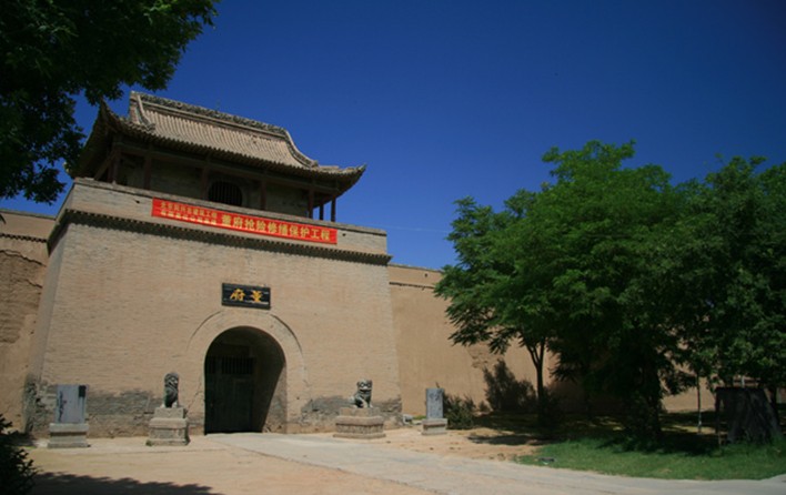 董府距寧夏回族自治區(qū)吳忠市1 7千米,在吳青公路北側(cè)500米處,該府西臨黃河,北倚秦渠,南與牛首山遙遙相望。